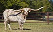 CYCLONE LM is a young bull out of the best 3S DANICA daughter and the best SILENT IRON son. For years, two longhorns slugged it out for longest Tip-To-Tip cow in the breed — 3S DANICA and SILENT IRON. Both are now each around 115” TTT and carry it well. Both are the product of over a century of work by legendary breeders Red McCombs / Alan Sparger and Darol Dickinson.
